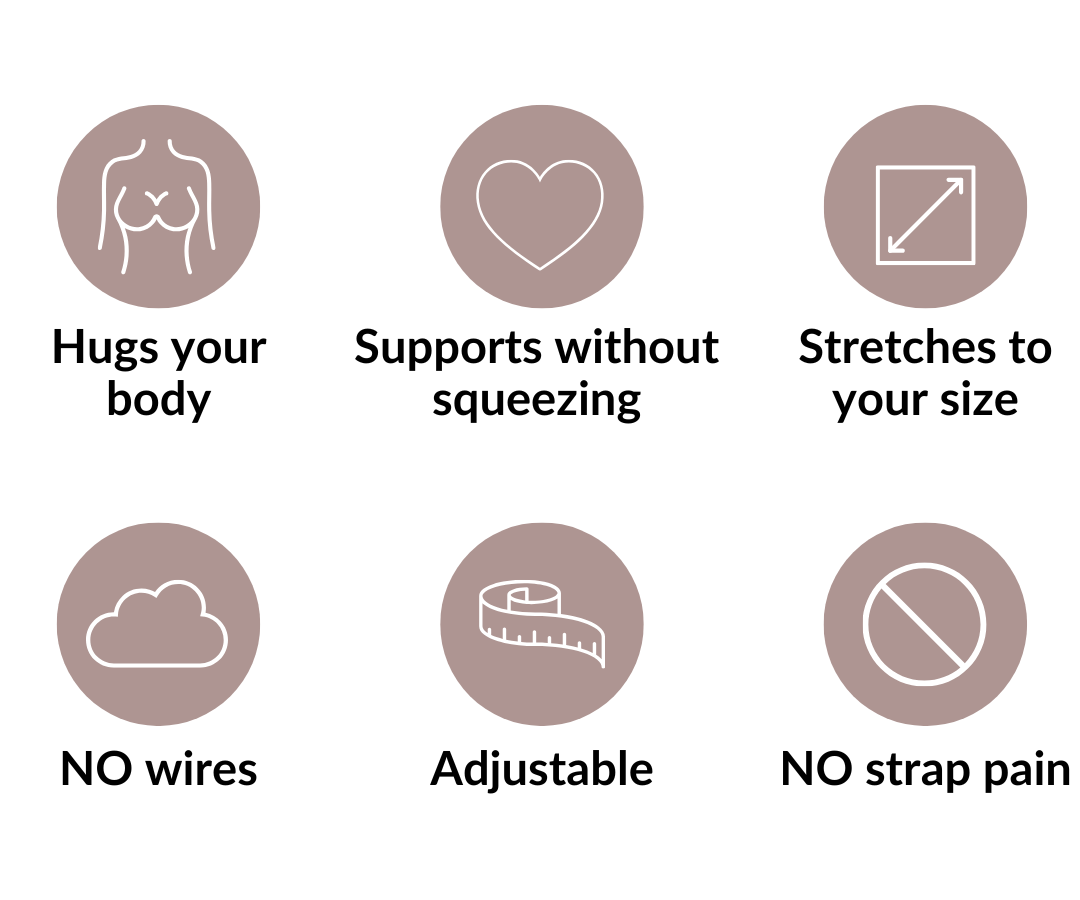 Her new bra spreads weight through gentle straps, flexes on sore, swollen days, and stays comfy through hot flushes and night sweats!